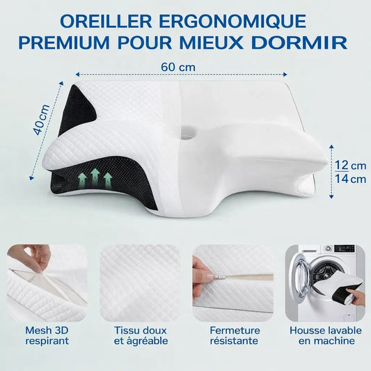 Oreiller Cervical Ergonomique 2-en-1 (Mémoire de Forme)