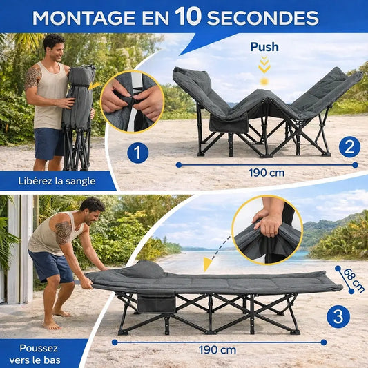 PROMO 29%Lit de camping pliant confort – 250 kg